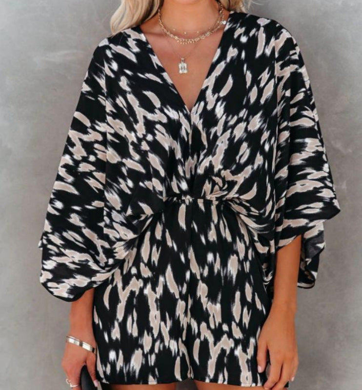 Women's temperament shorts European and American solid color V-neck high waist tie loose jumpsuit