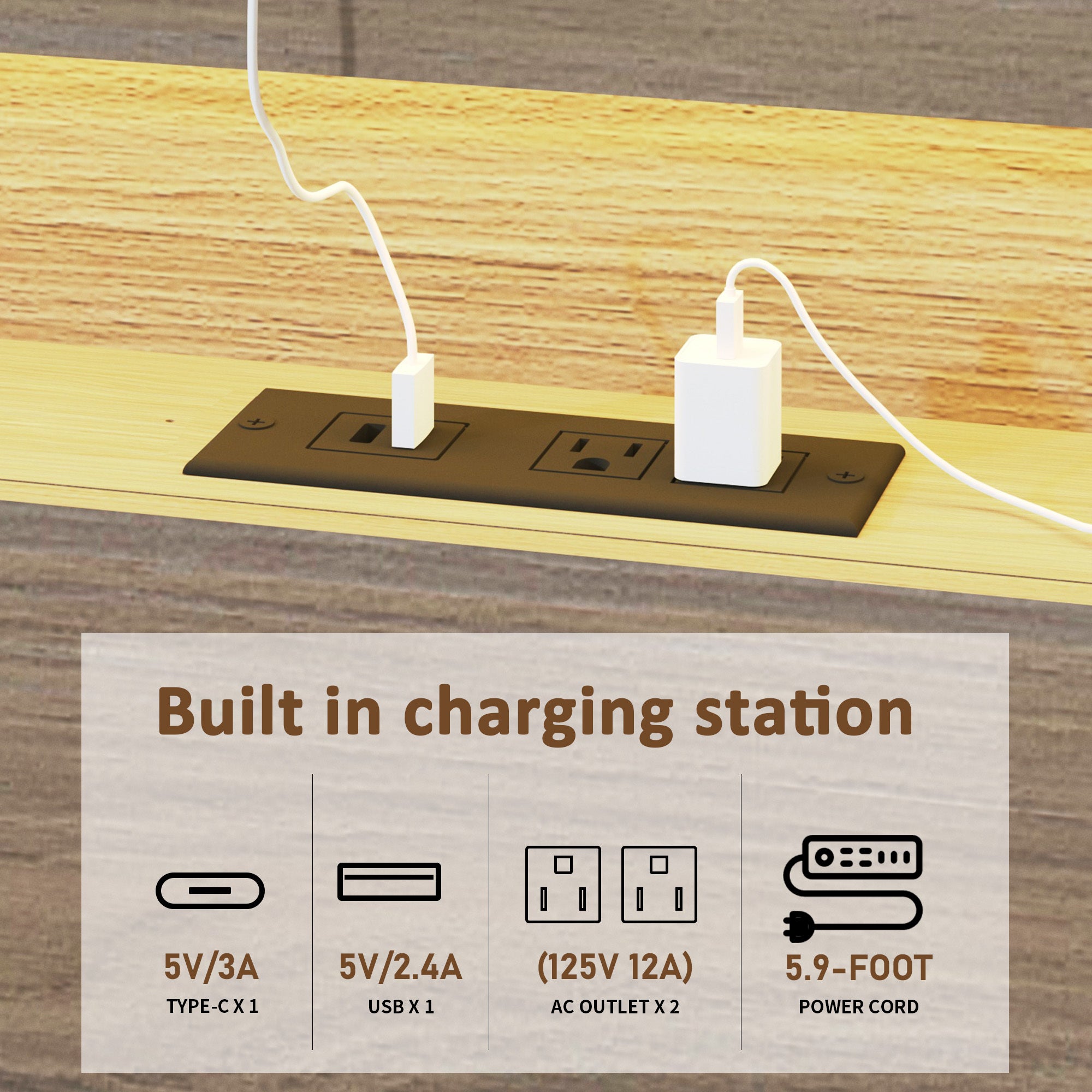 - [Storage Headboard with Charging Station] 2 Standard Plug Outlets & 2 USB Ports with Cable Management 6 ft long power supply cord. Make charging and common small items such as phones, glasses, and books within easy reach.