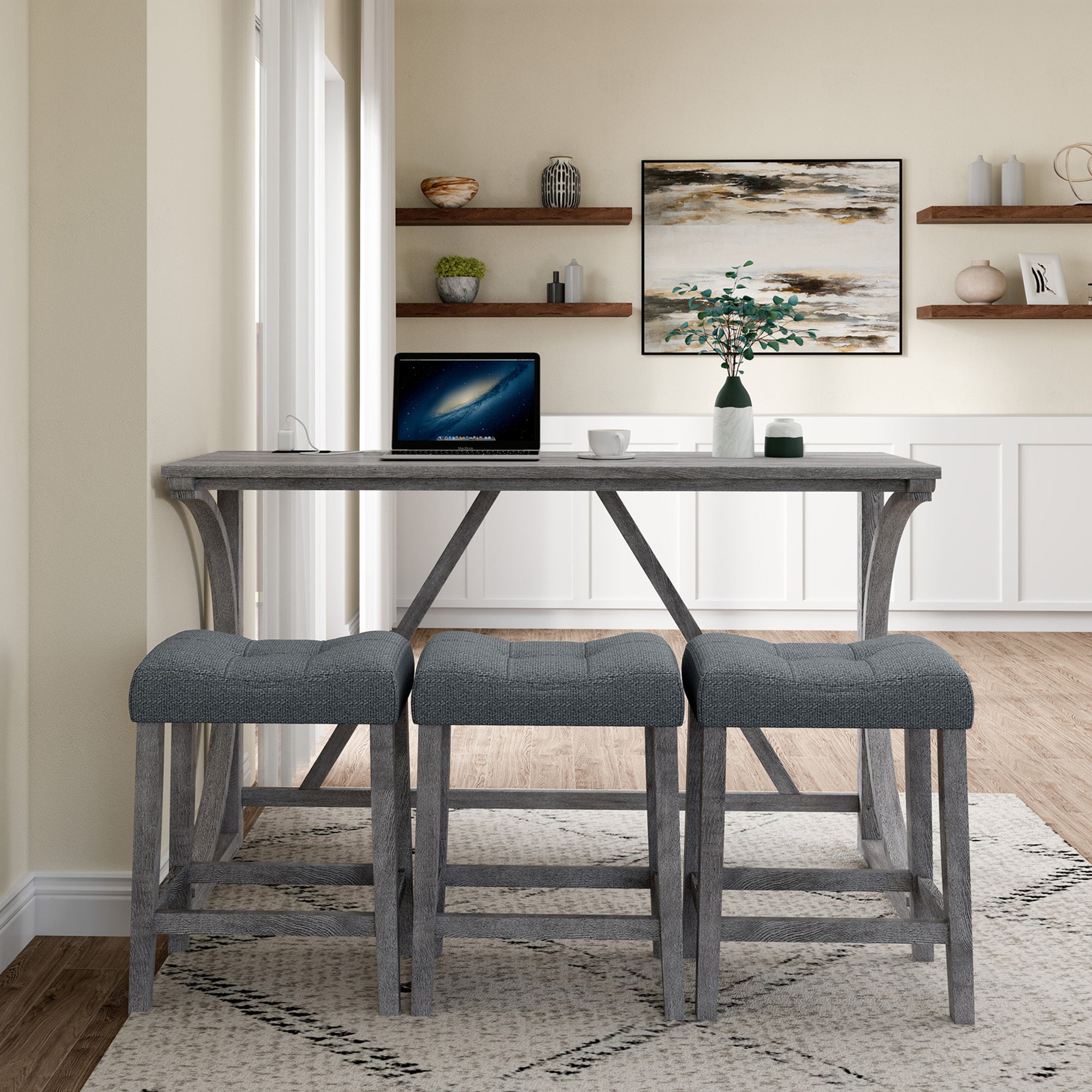 Upgrade your space with this highly functional 4-Piece Bar Table Set, combining rustic style with modern convenience. This Industrial Dining Table Set features a revolutionary built-in Power Outlet, turning your dining area into a connected hub for charging phones, laptops, and gaming devices right at the table.