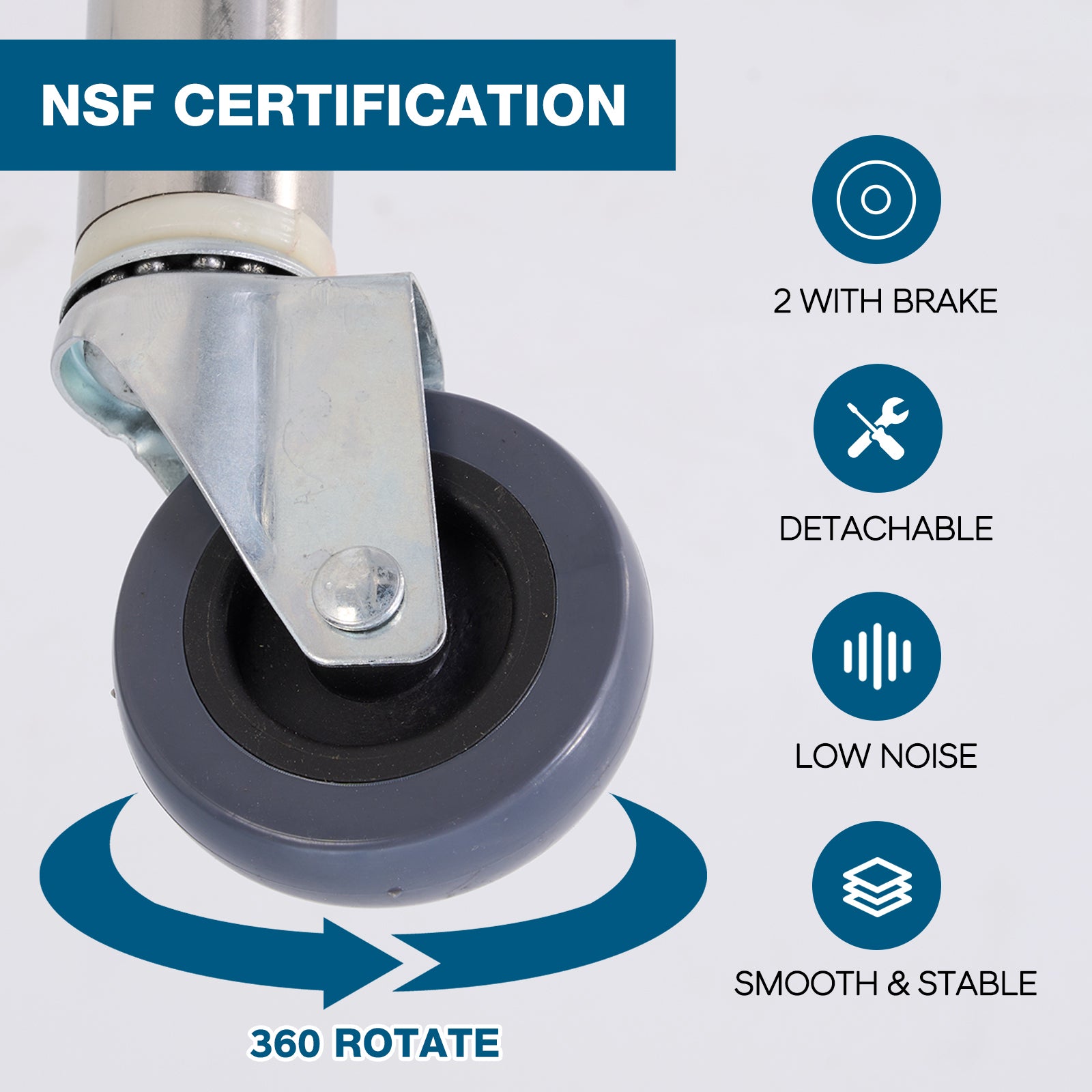 This table is equipped with smooth-rolling wheels (casters) for effortless mobility, allowing you to easily move it for cleaning or reconfiguring your space. The included adjustable undershelf provides a generous amount of customizable storage, keeping your tools and ingredients organized and within reach. Whether for a restaurant or your own home kitchen, this sturdy commercial prep table delivers a reliable and convenient surface for any task.