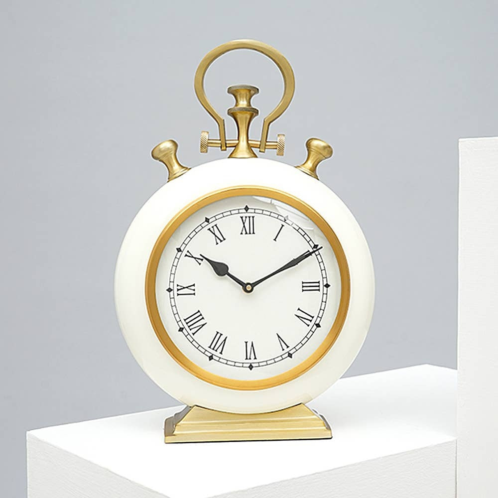 - Make a bold statement with this Contemporary Off White& Gold Accent Table Clock.
