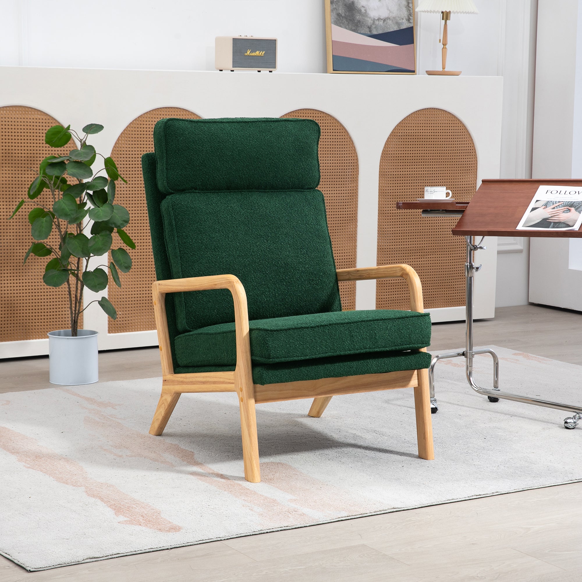 - Comfort and relaxation: This chair is made of boucle fabric and filled with high-density sponge, providing stronger resilience and avoiding easy deformation.