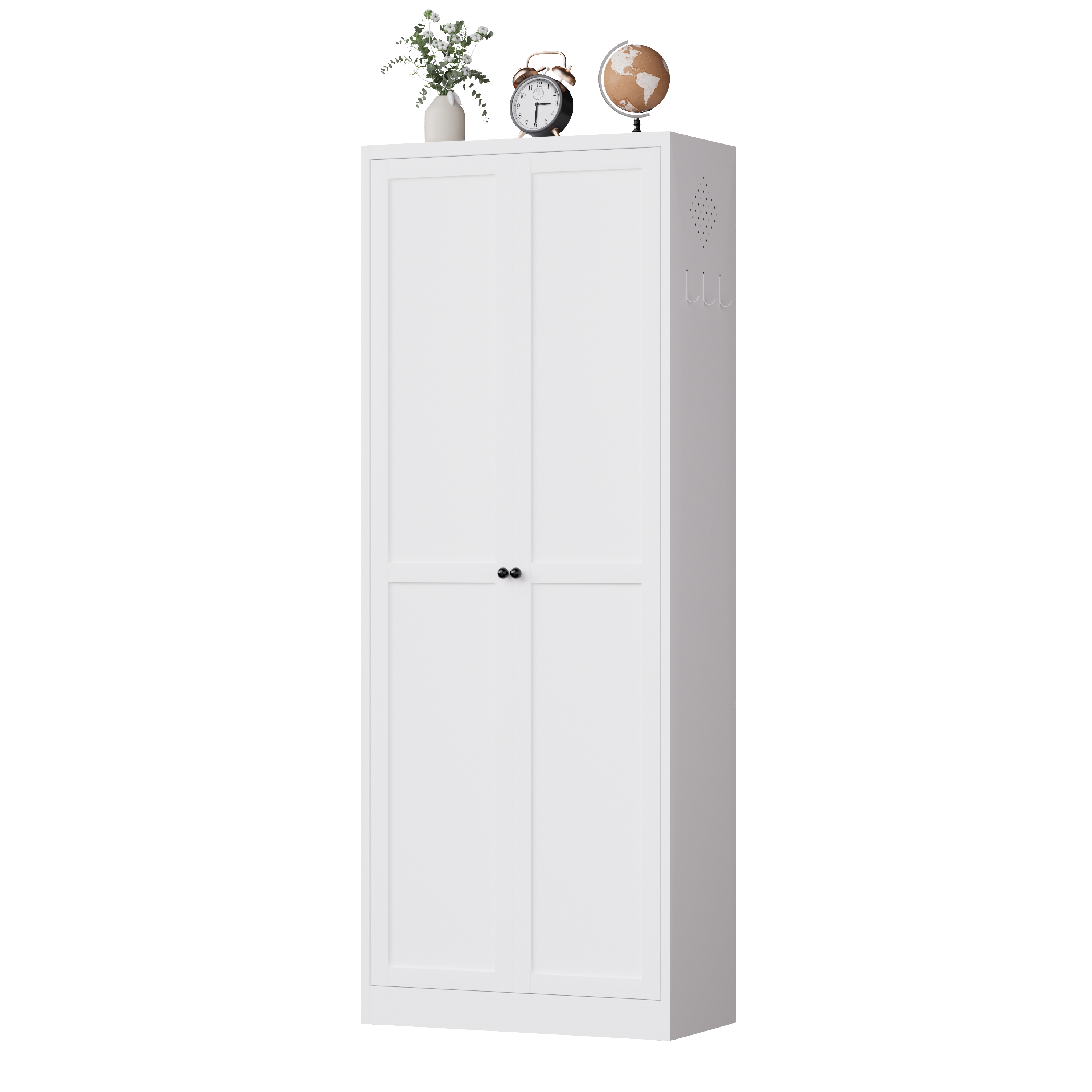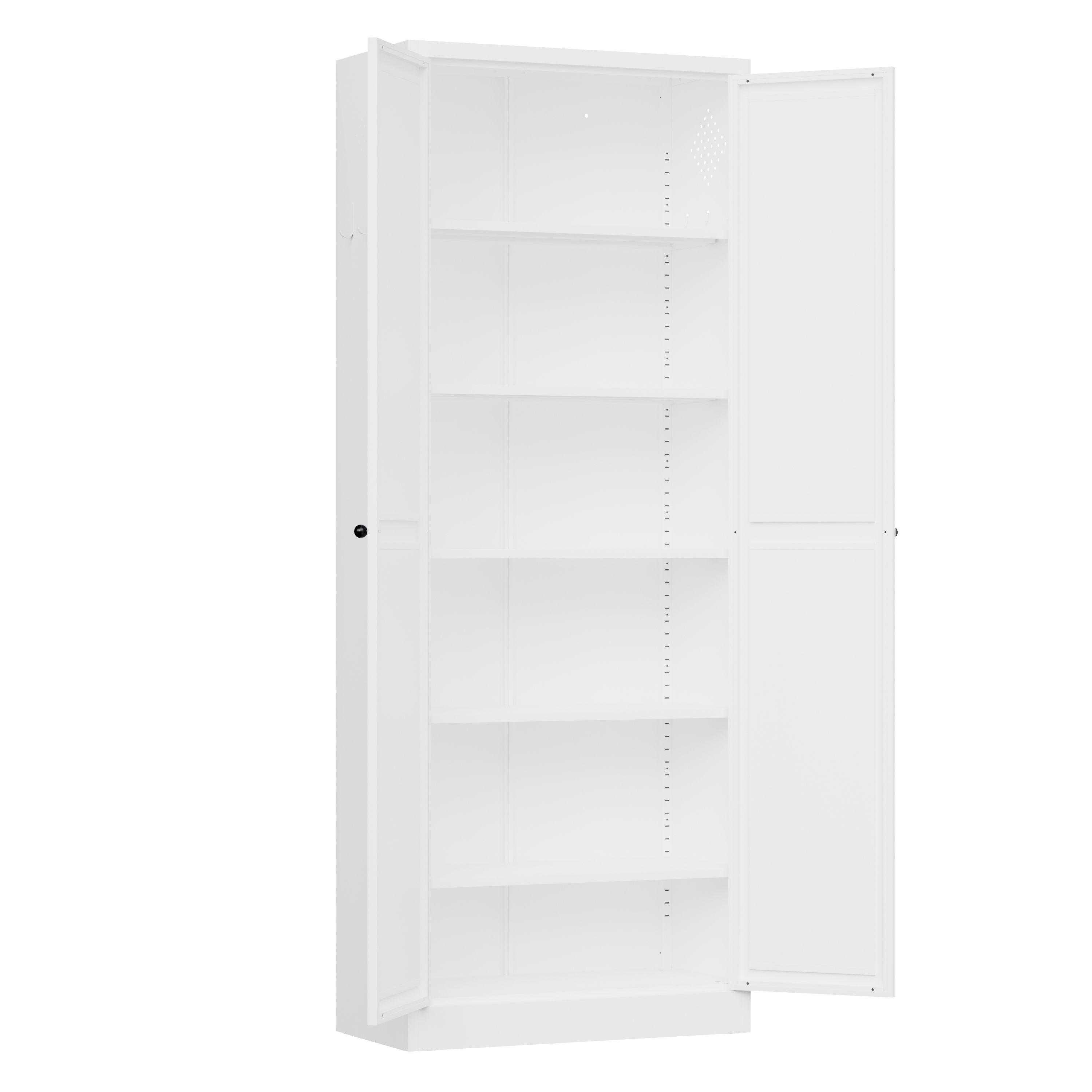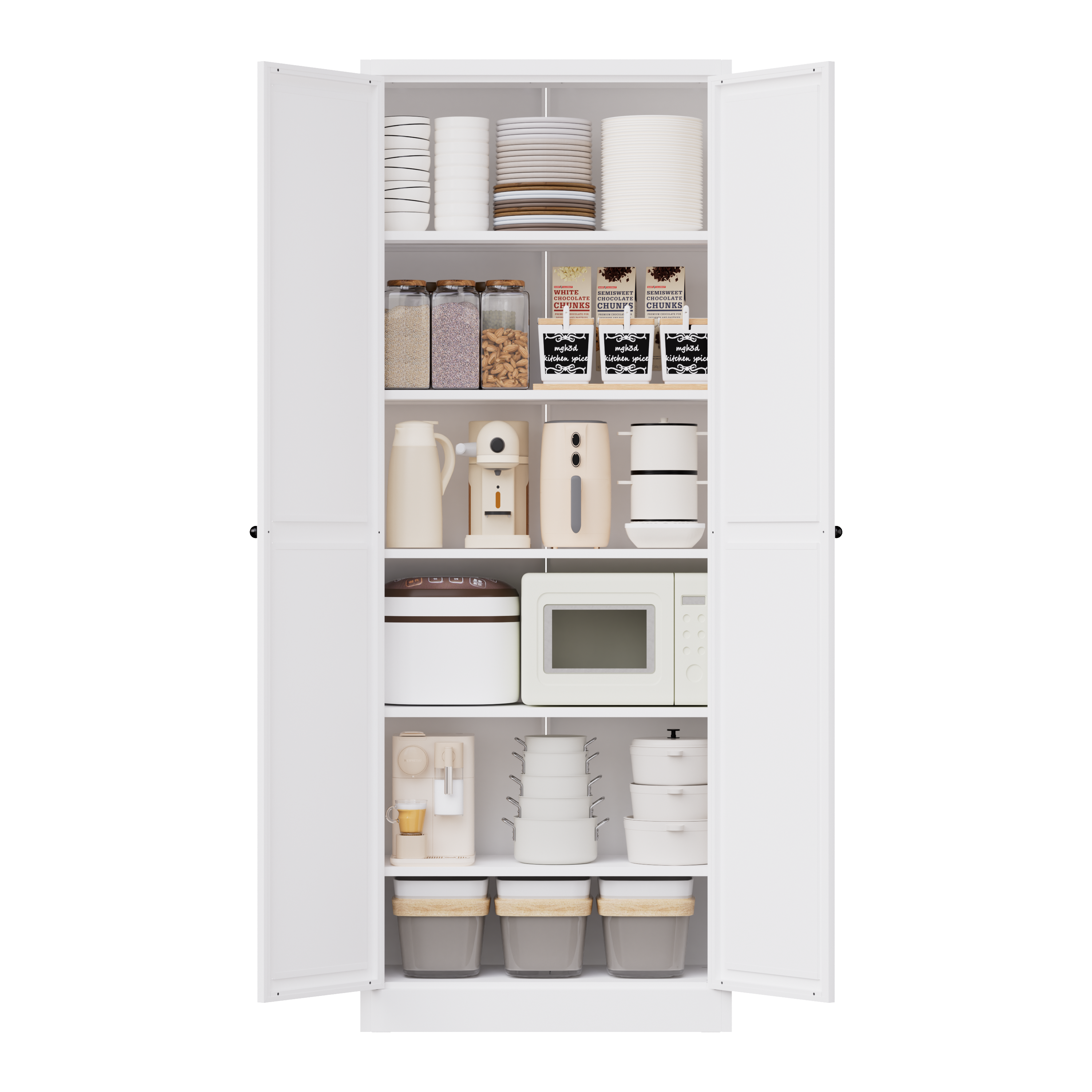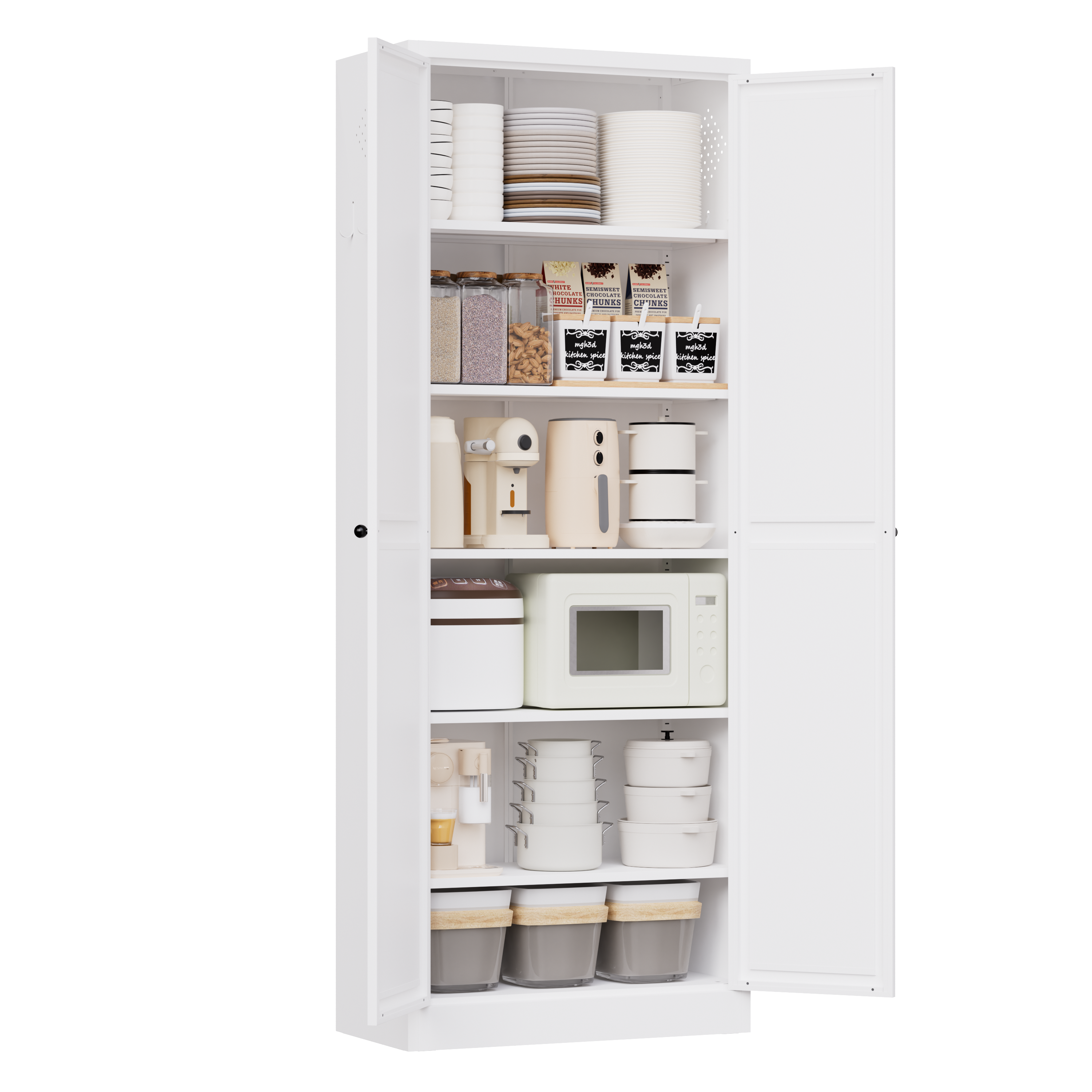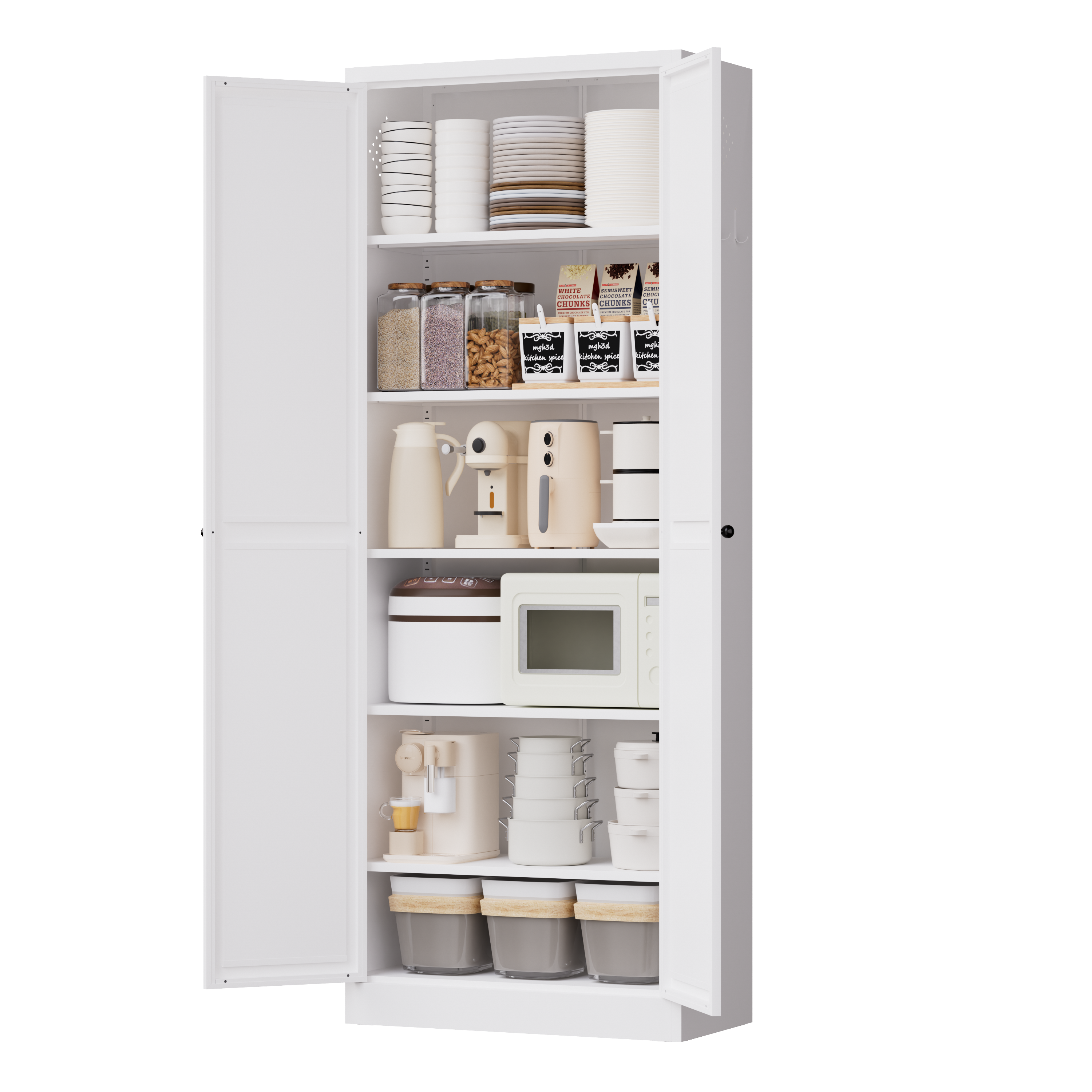 - 🗄️【Spacious White Pantry Cabinet with Solid Steel Door】Achieve a clean, farmhouse-style kitchen with this white storage cabinet. The solid steel door conceals pantry items, small appliances, or cleaning supplies, keeping counters clutter-free. Its versatile design makes it a perfect freestanding organizer for your kitchen, dining room, or laundry room.