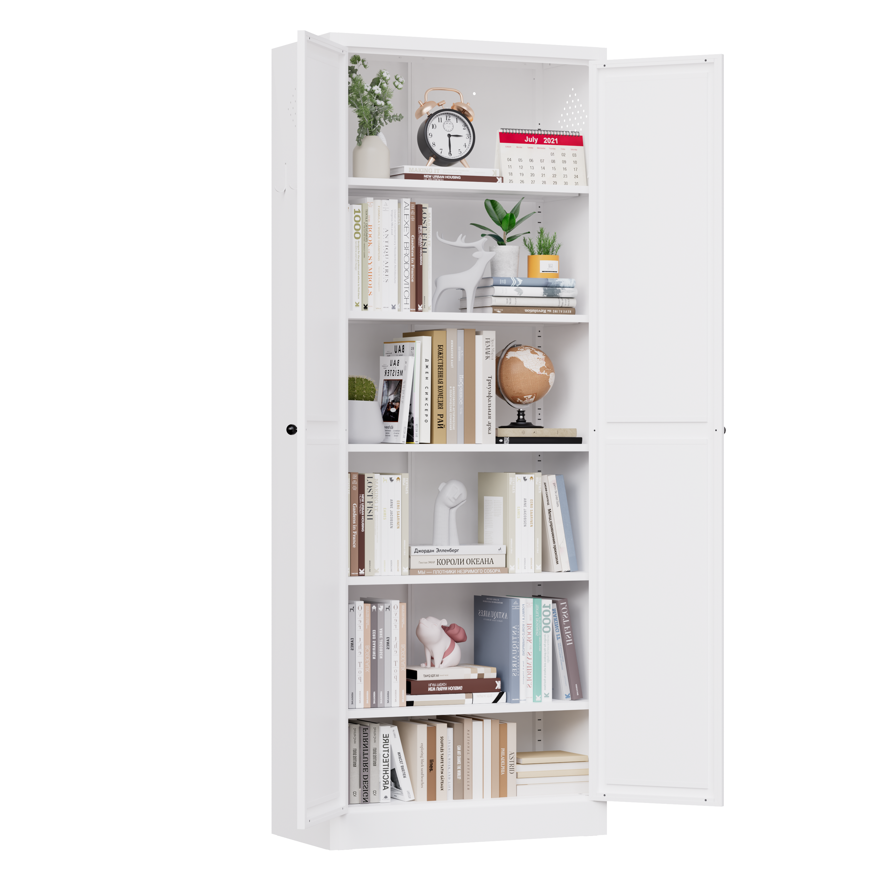 72' Kitchen Pantry Cabinet, Farmhouse Storage with 5 Adjustable Shelves & Magnetic Closure, White Metal Freestanding Cupboard for Dining Room, Assembly Required