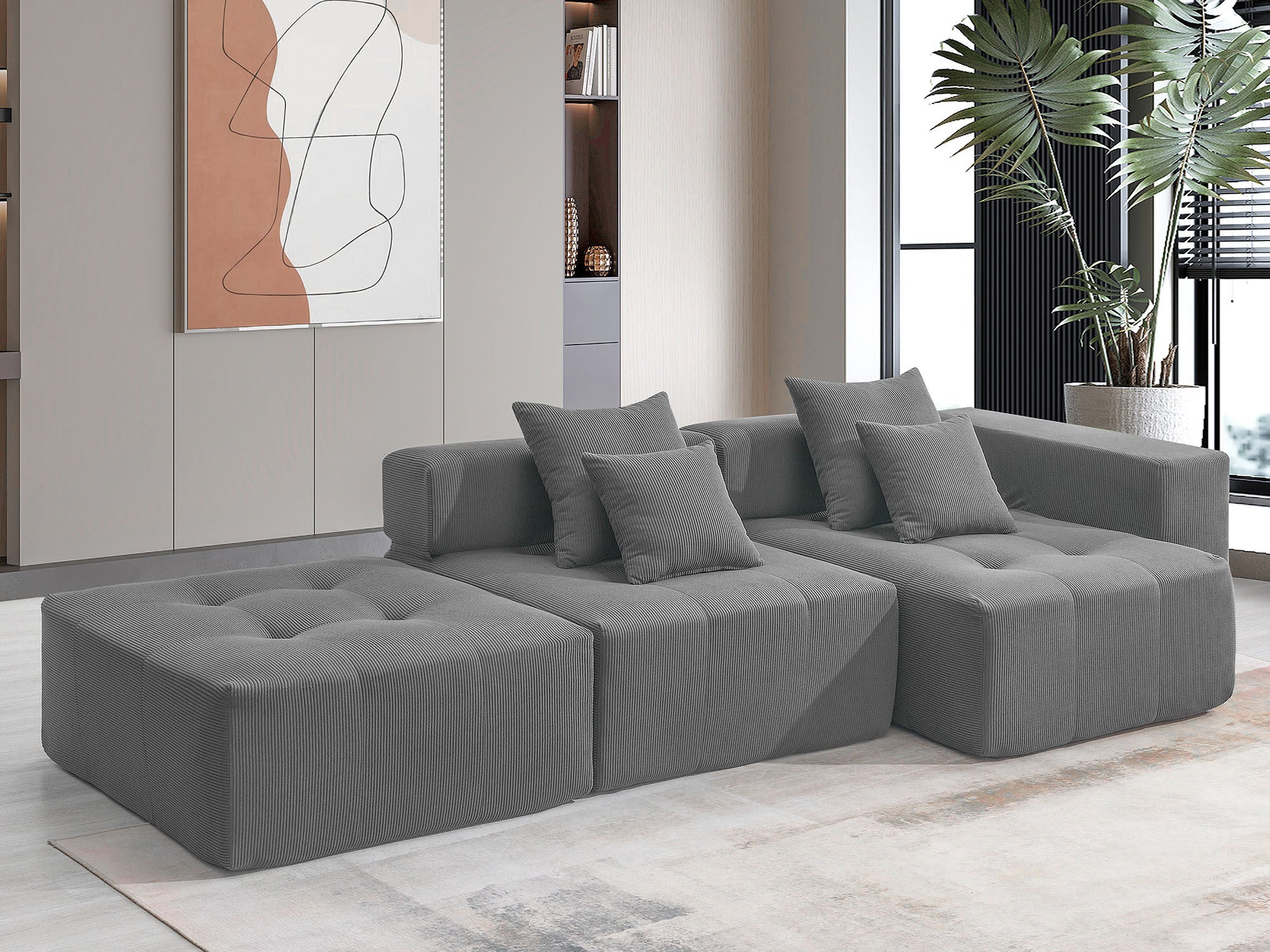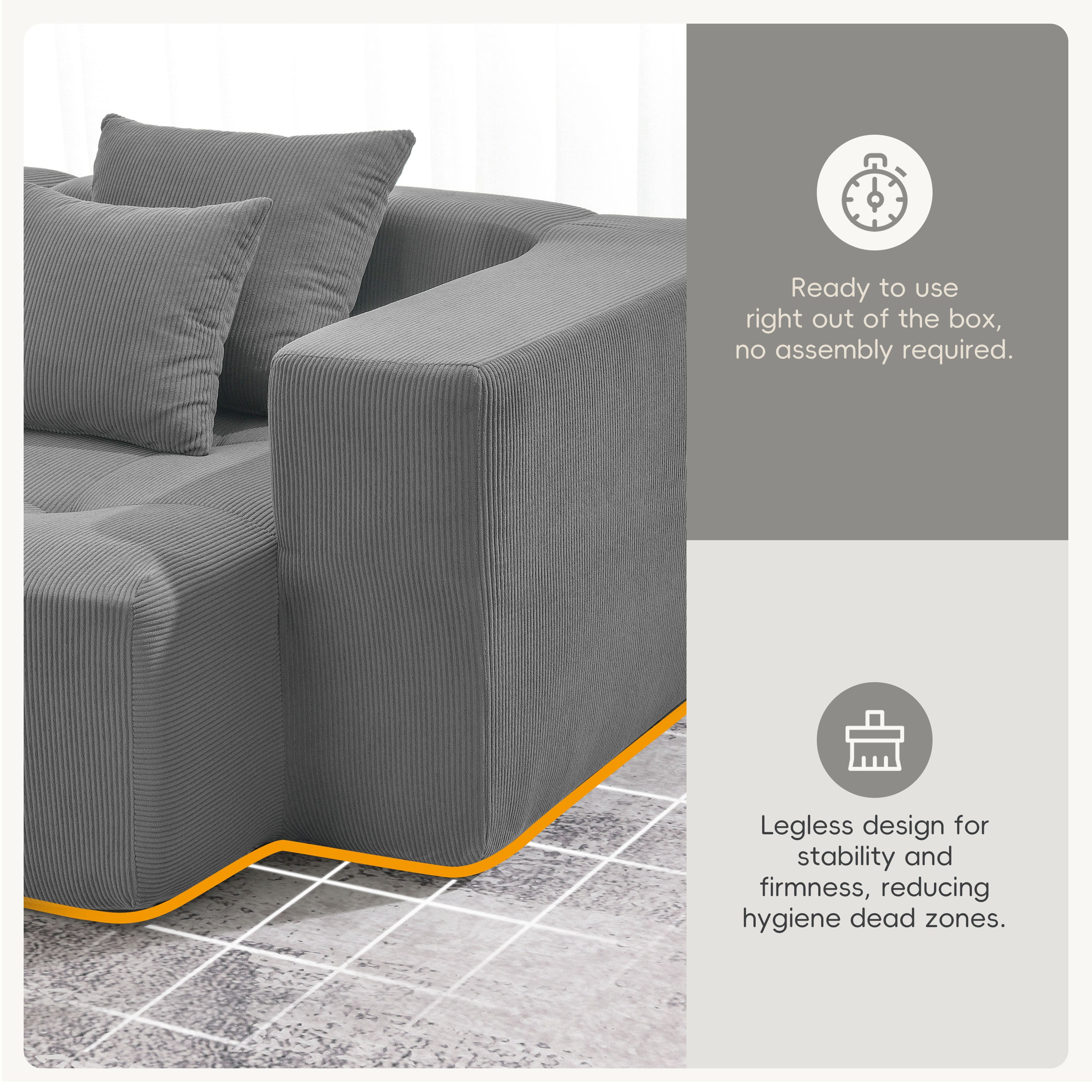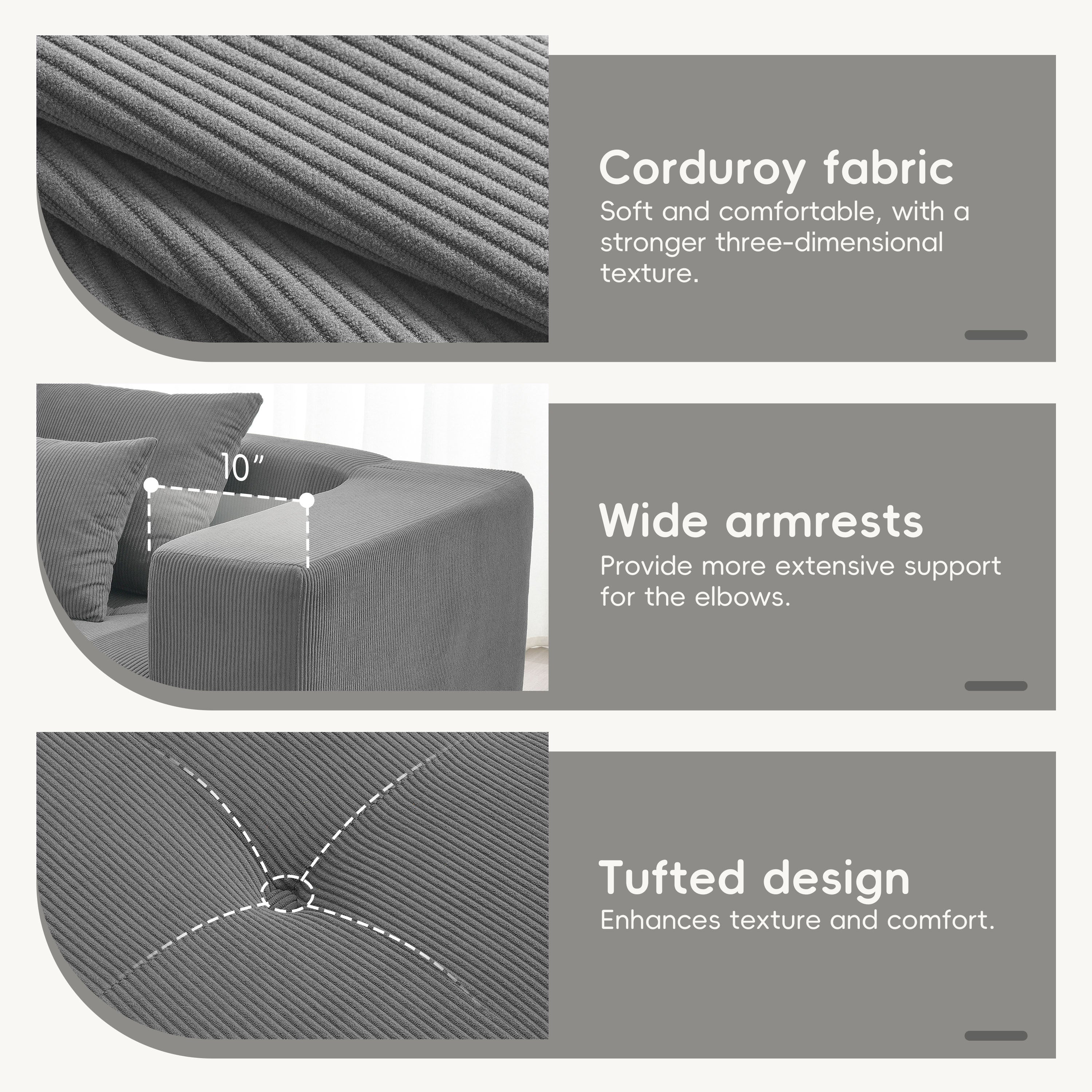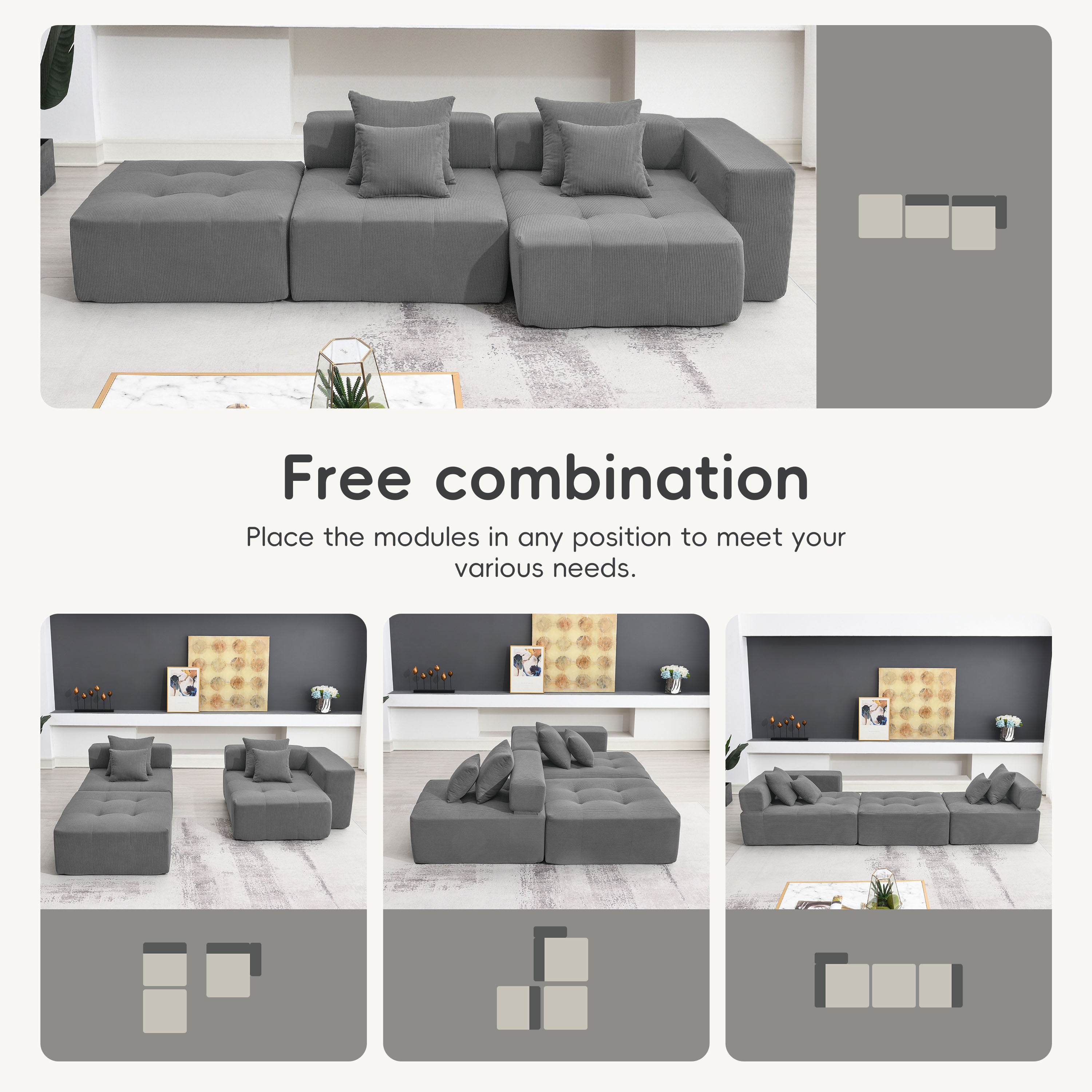 [VIDEO+New]105.5''L Shaped Modular Sectional Sofa,Minimalist Corduroy Floor Couch Set,Convertible Foam-Filled Cloud Compressed Couch for Living Room,3 PC Free Combination,No Assembly Required,3 Colors