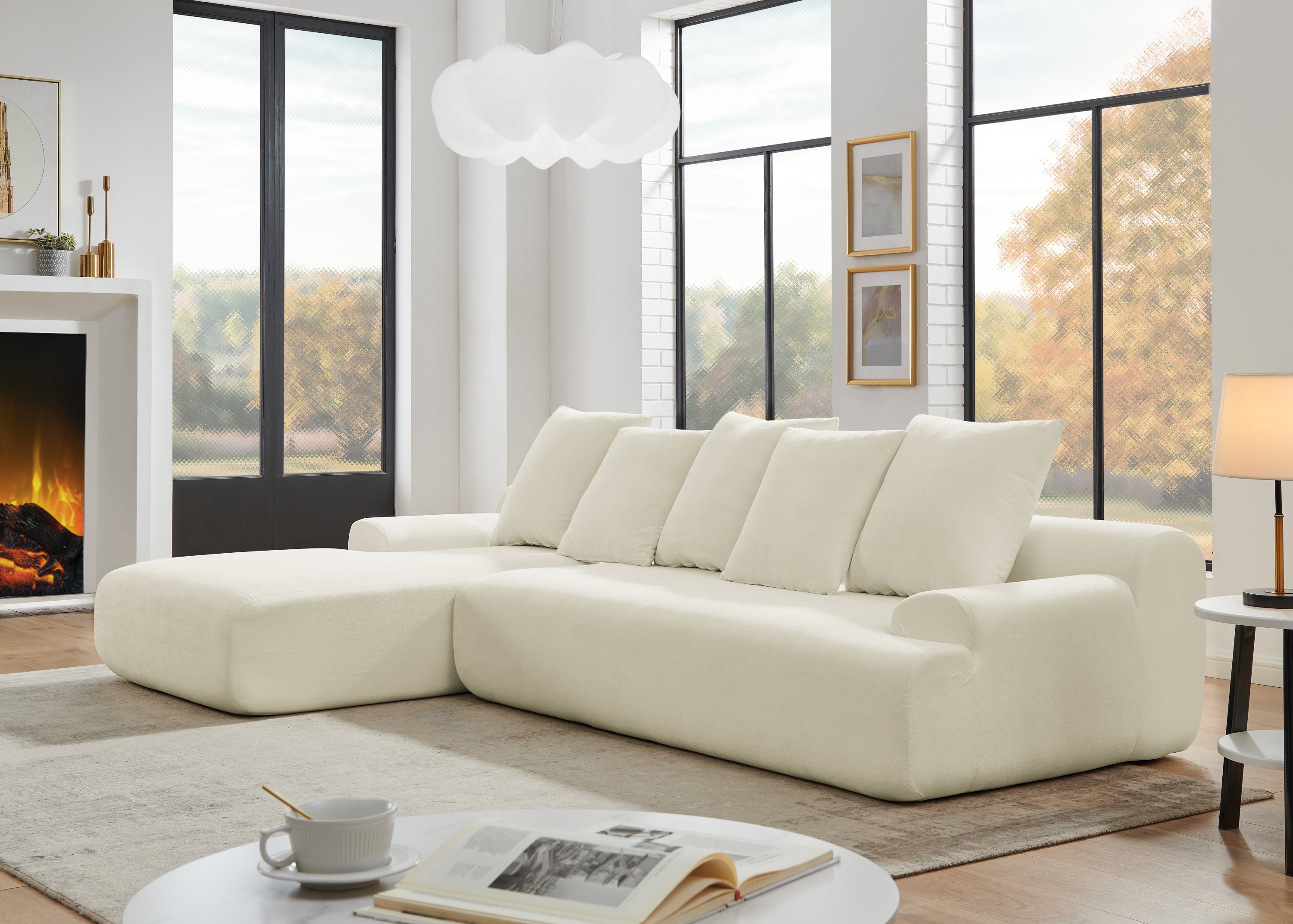 Spacious L-shape design measuring 110.25" x 67"