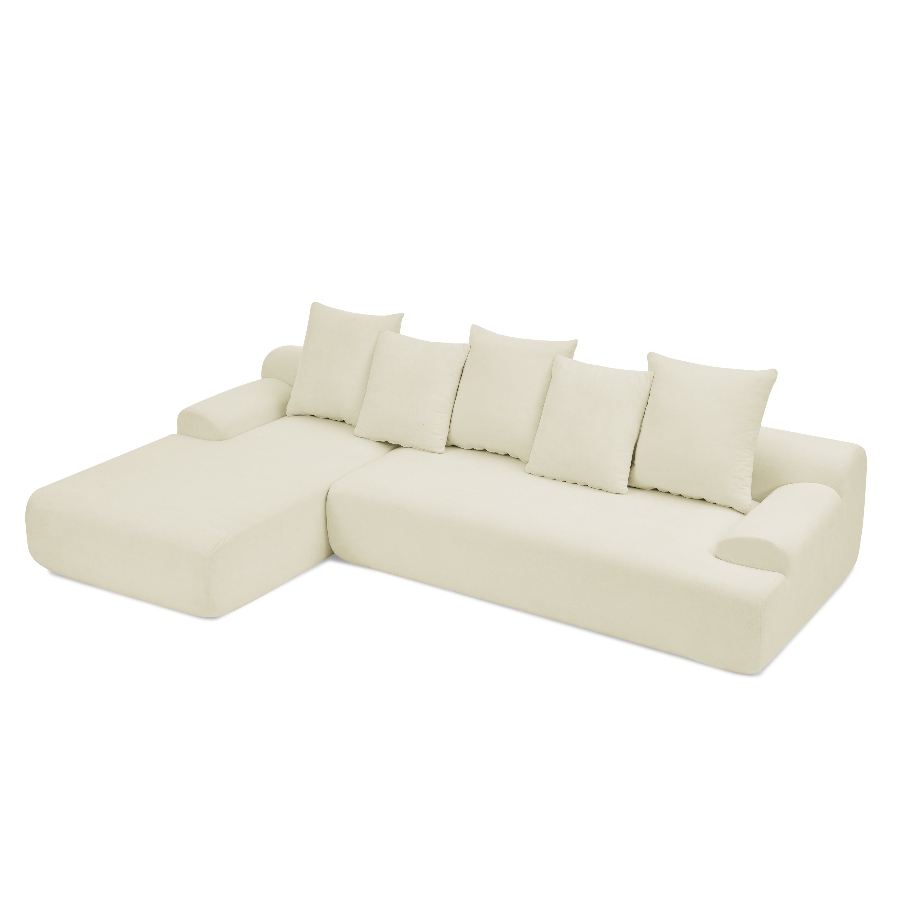 Modern L-Shape Sectional Sofa Couch – 110.25"x67", Modular Melange Velvet Sofa in Beige, Free Combination Design