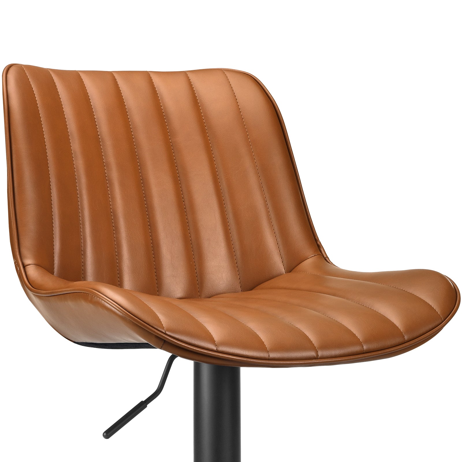 Swivel Adjustable Bar Stools Set of 2 | Brown PU Leather Counter Height Bar Chairs with Back Support