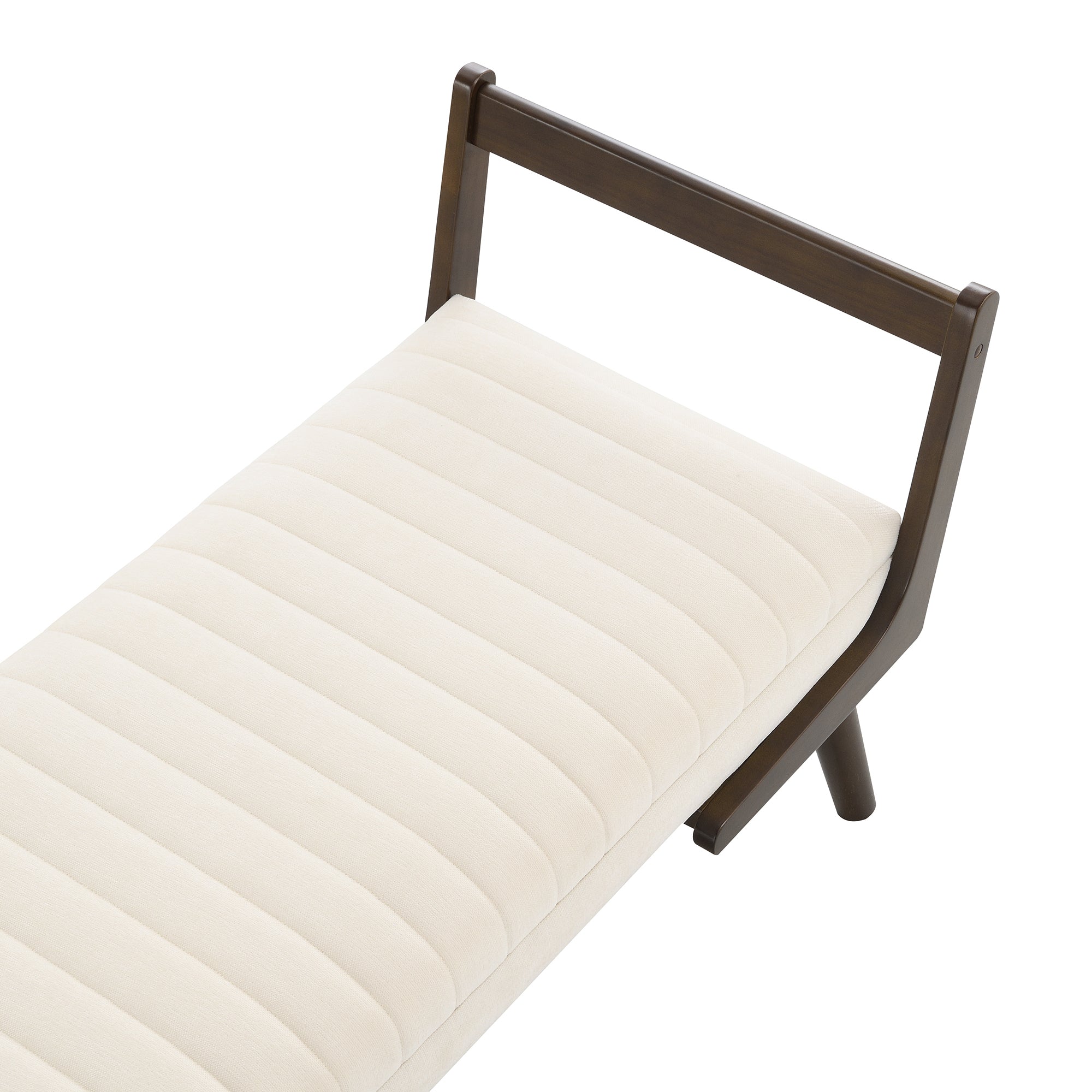 52' Mid Century Bench with Walnut Wood Leg,Channeled Upholstered Footrest Stool for Kitchen, Living Room, Bedroom, Entryway, End of Bed. Chenille Fabric Beige