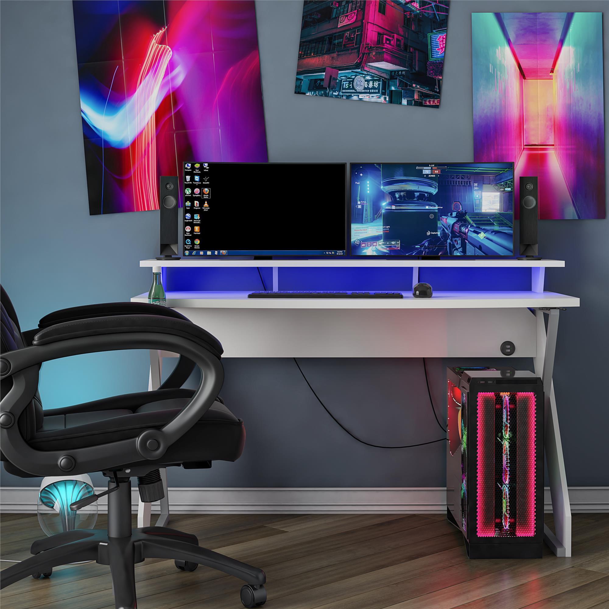 Xtreme Gaming Desk with Monitor Riser | White PC Gaming Table