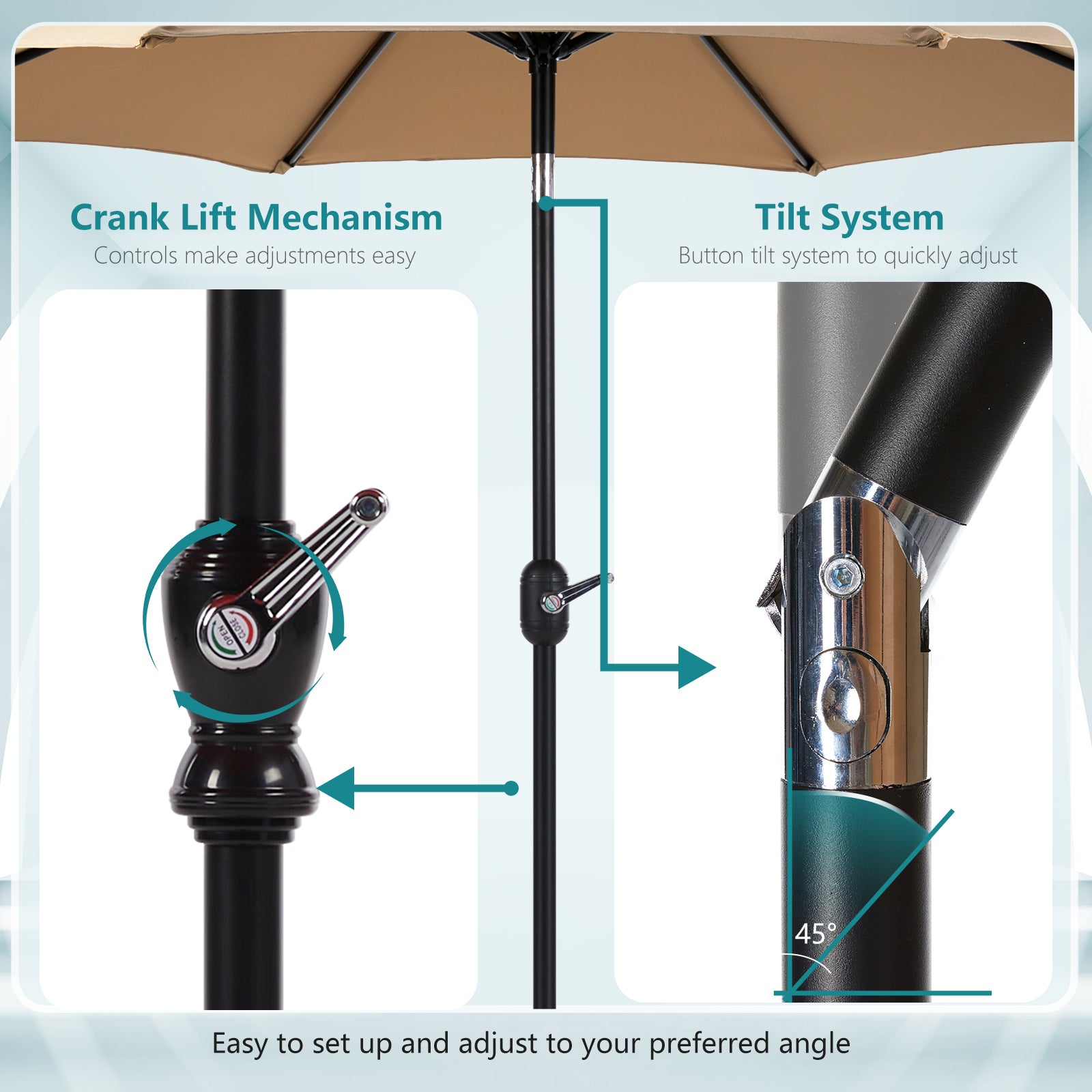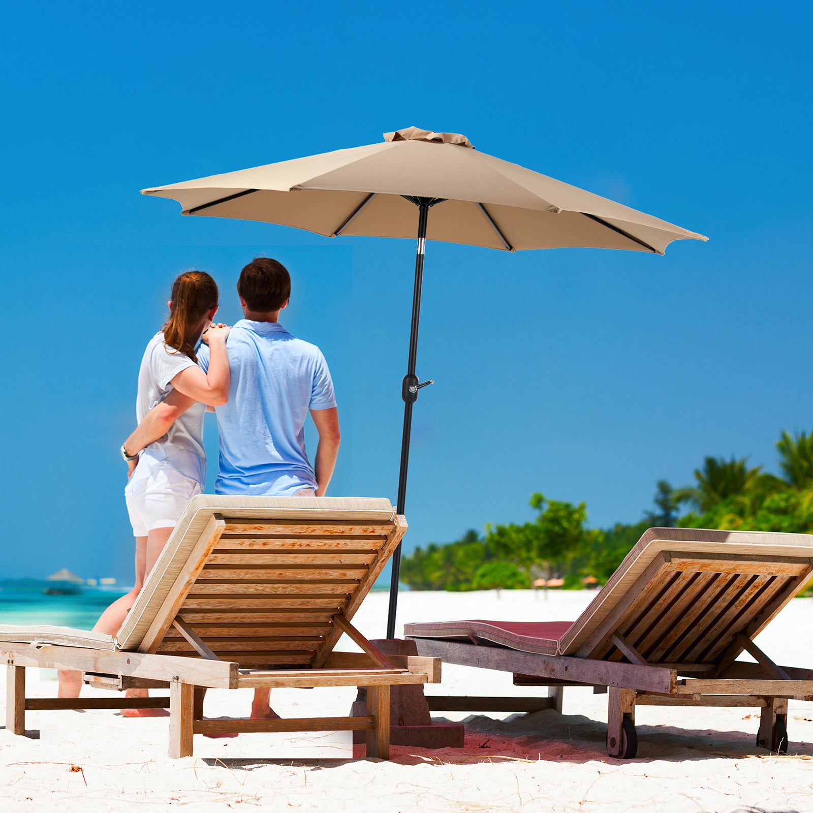 9 foot outdoor patio umbrella with button tilt and crank, Outdoor patio/market table umbrella UV protected and waterproof, khaki