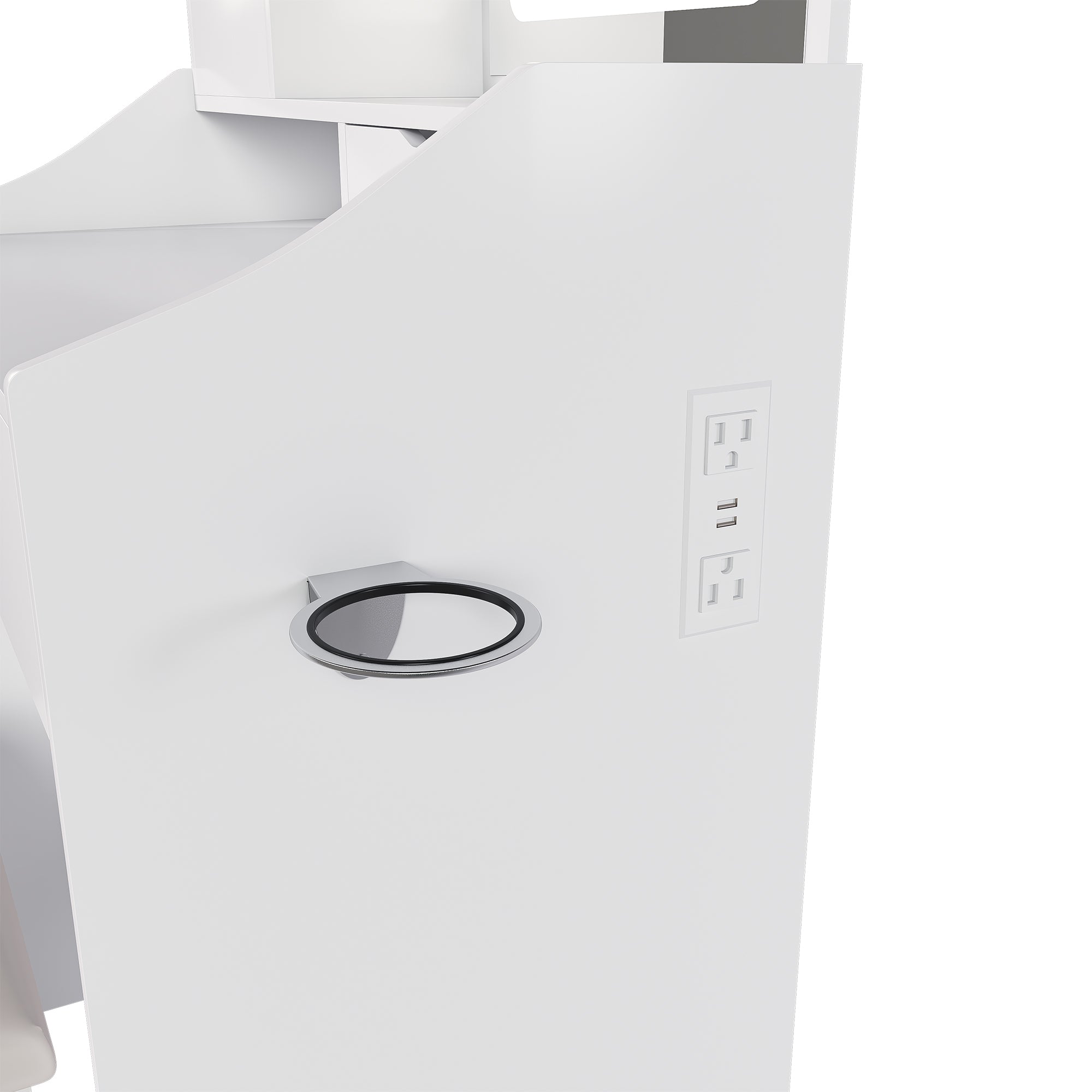 - 【Built-In Charging Station & Hair Dryer Holder】Stay connected and clutter-free with a integrated power hub featuring 2 AC outlets and 2 USB ports. Conveniently charge your devices while you get ready. The added hair dryer holder keeps your tools organized, streamlining your entire beauty routine in one sleek, efficient setup.