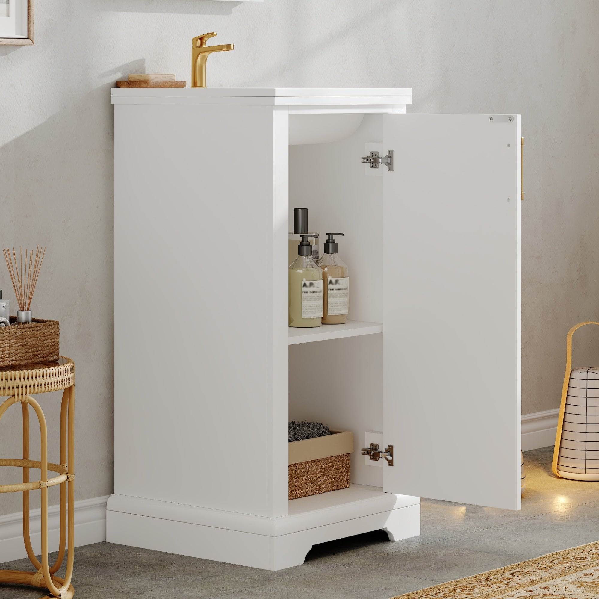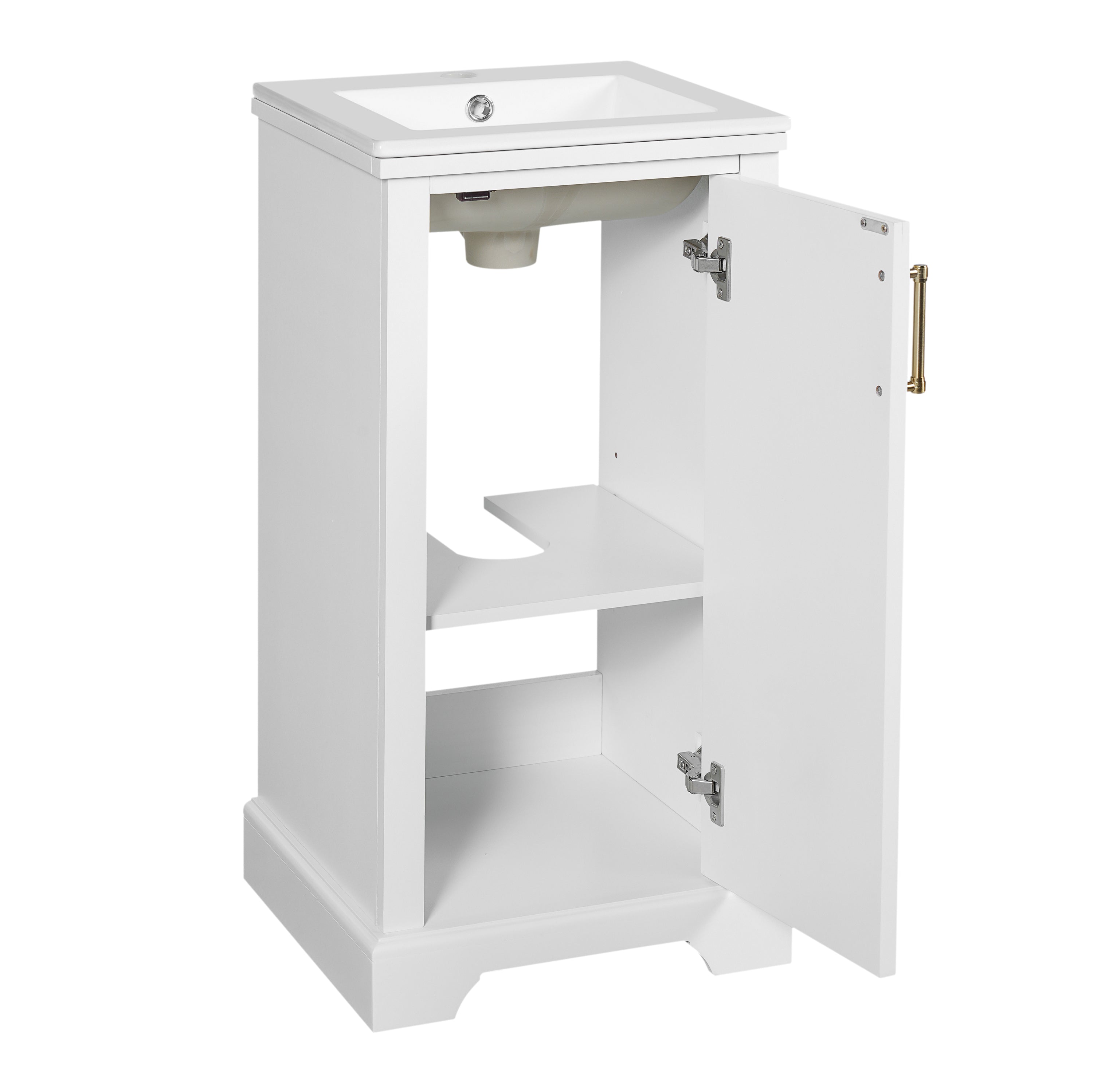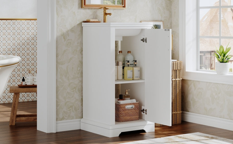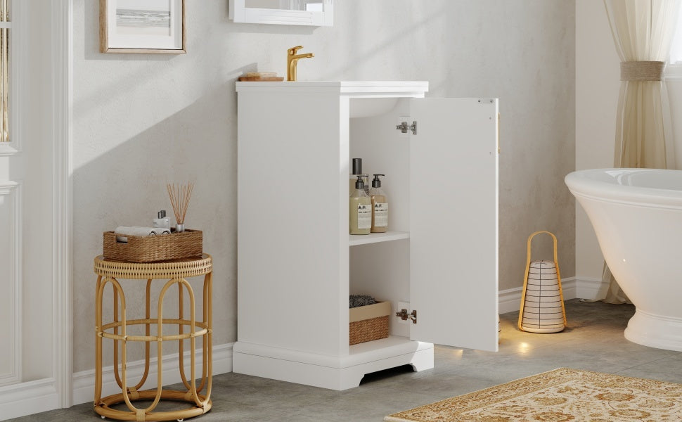 16-inch Bathroom Vanity with Ceramic Sink, Freestanding Single Vanity Set with Soft Closing Door, Adjustable Shelf, French Style, White