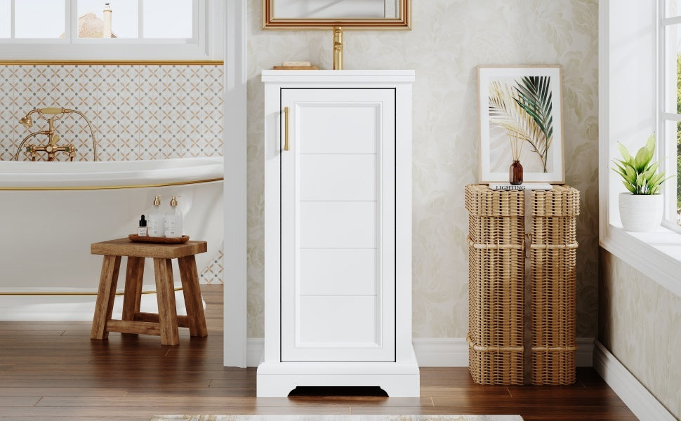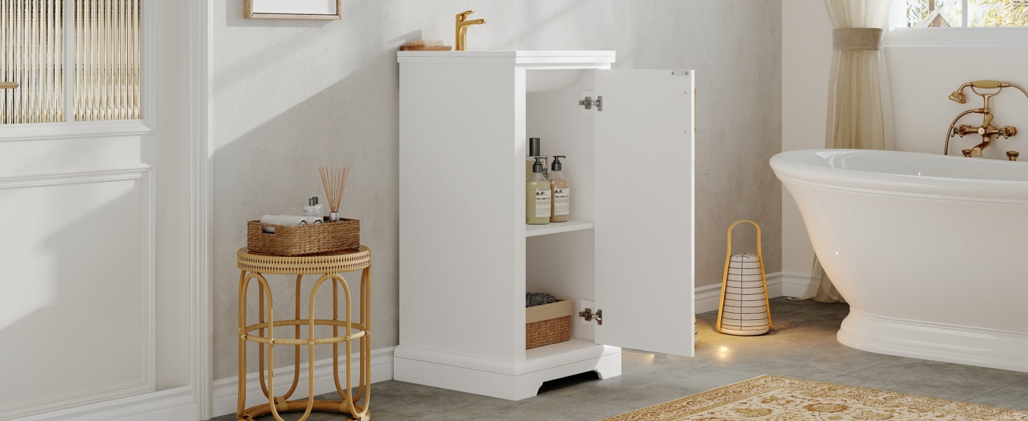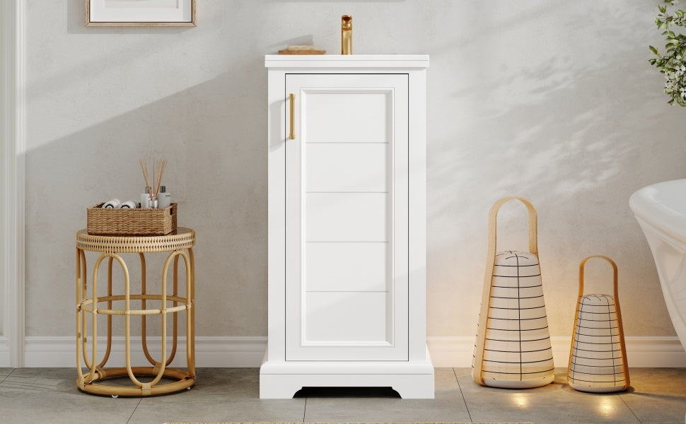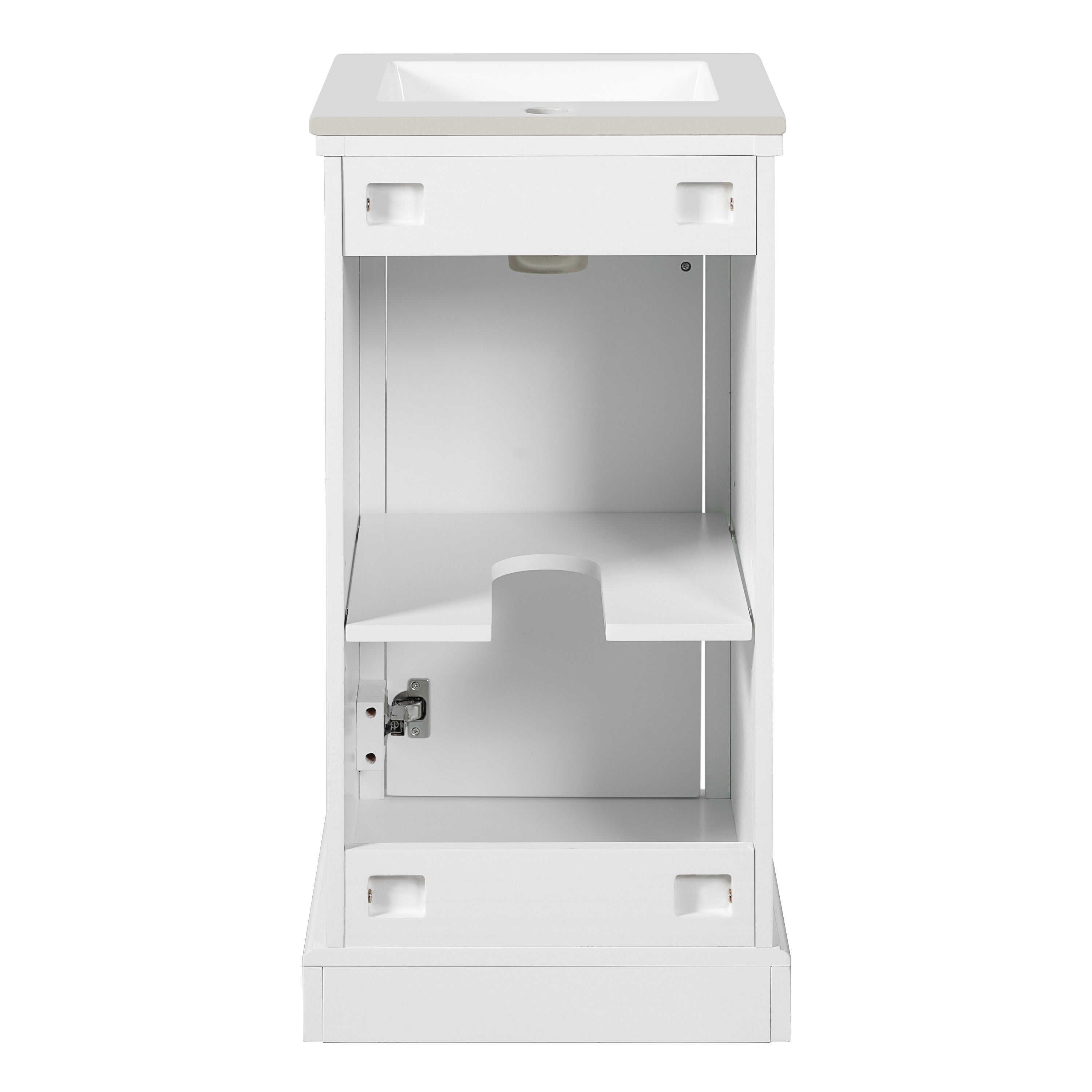 16-inch Bathroom Vanity with Ceramic Sink, Freestanding Single Vanity Set with Soft Closing Door, Adjustable Shelf, French Style, White
