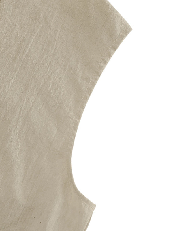 Men's Casual Sleeveless Waistcoat Shirt Linen Hooded Solid Color Breathable Loose Top